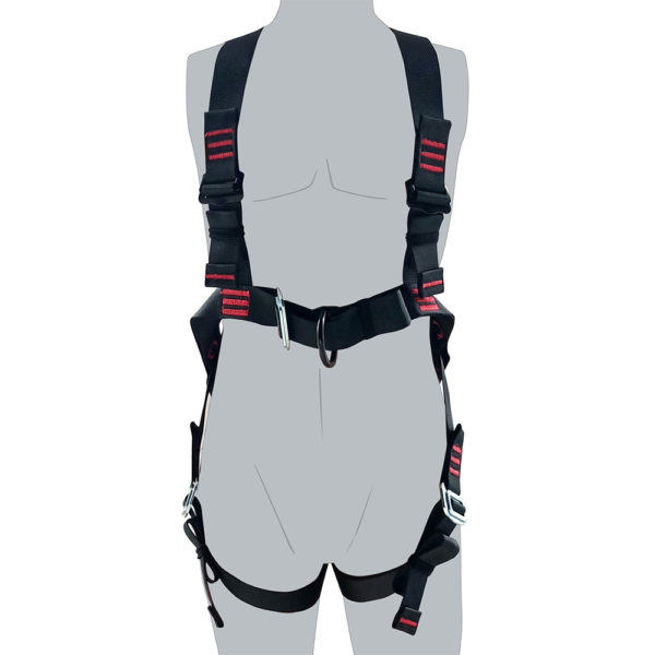 全身式安全帶用于在墜落過(guò)程中固定住穿著者并承受其沖擊力(即在一段距離的自由下落后停止繼續(xù)墜落)。